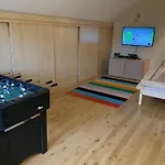 La Dom Z Ogrodem Blisko Trojmiasta I Kaszub Villa vanta un balcone e un salottino e mette a disposizione degli ospiti un televisore e una TV a schermo piatto con canali satellitari. Oltre a un divano, l'interno presenta un caminetto. Questo stabilimento dispone di un bagno con un bagno alla francese e una doccia. Gli ospiti possono inoltre usufruire di asciugamani.